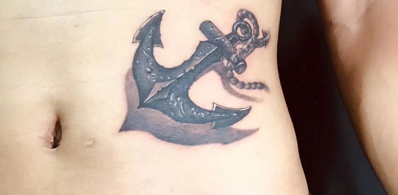 石雕纹身图片_腰部背部欧美写实海军标志纹身图案