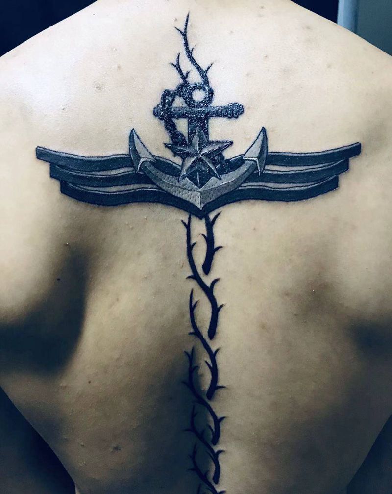 石雕纹身图片_腰部背部欧美写实海军标志纹身图案