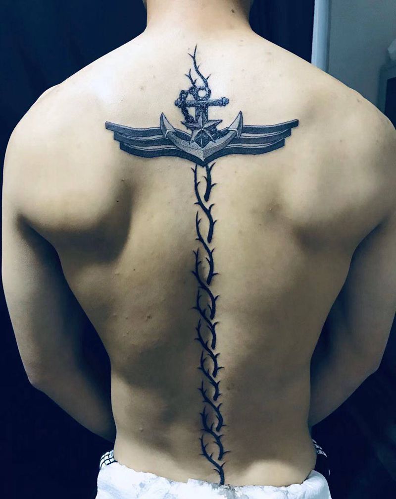 石雕纹身图片_腰部背部欧美写实海军标志纹身图案