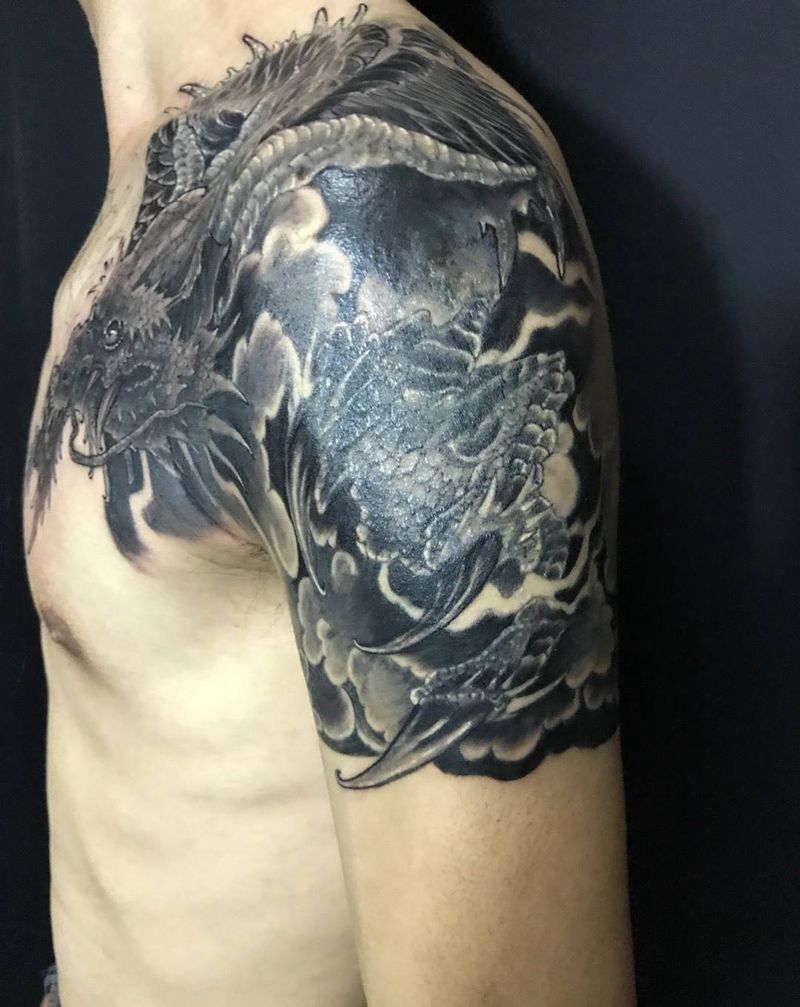 当前位置: 首页 >广东省湛江市纹身店-林裕刺青纹身图案>盖图未完-龙纹身图片