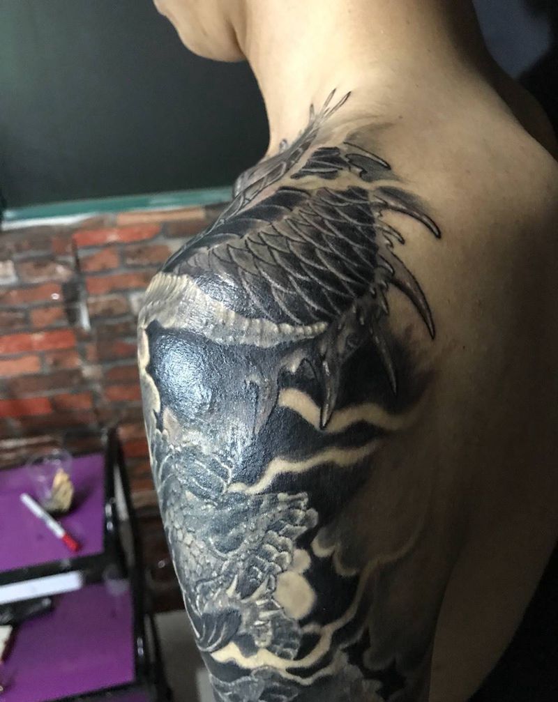 当前位置: 首页 >广东省湛江市纹身店-林裕刺青纹身图案>盖图未完-龙纹身图片