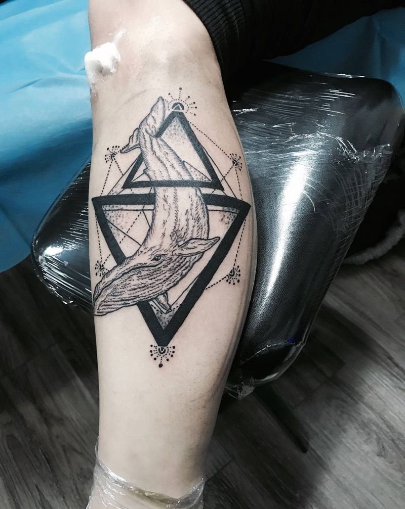 • T网红王老大花腿龙纹身图片_腿部新传统纹身图案