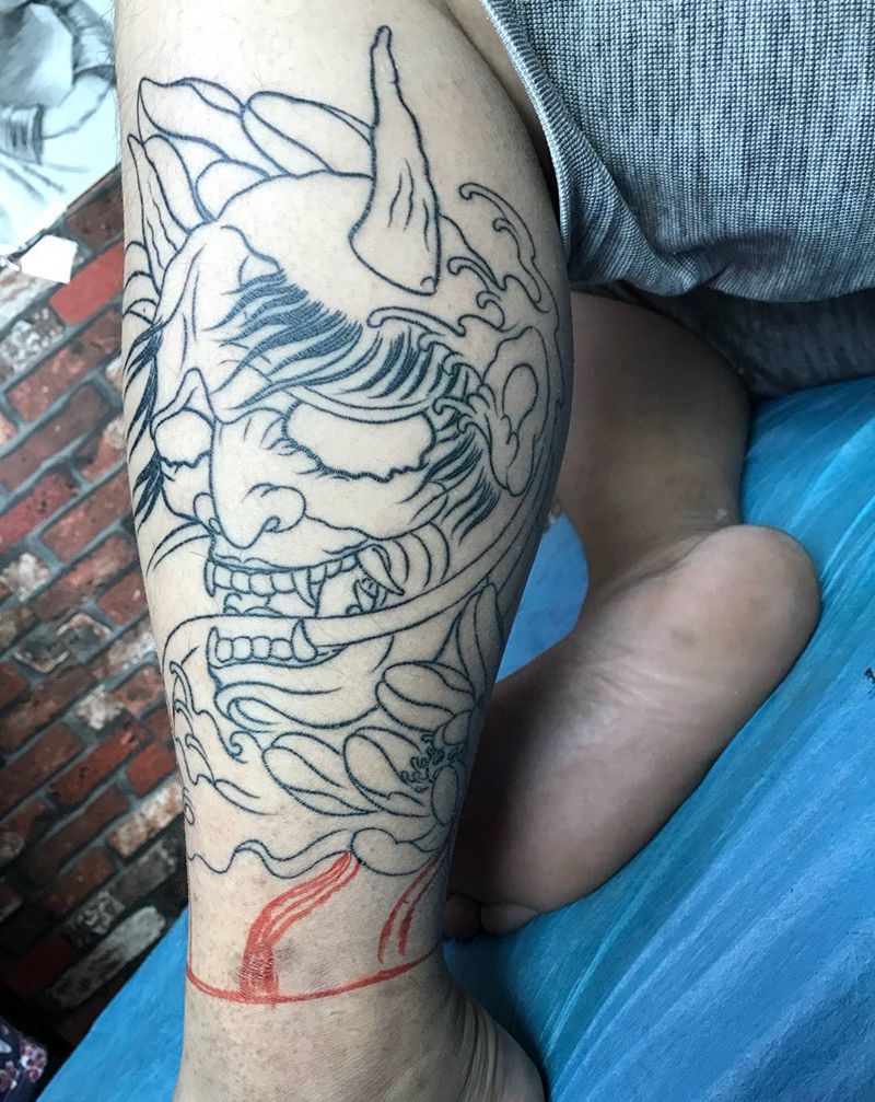 • T网红王老大花腿龙纹身图片_腿部新传统纹身图案