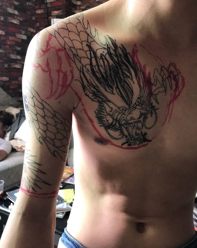 过肩龙,客人的强烈要求只添加,不改纹身图片
