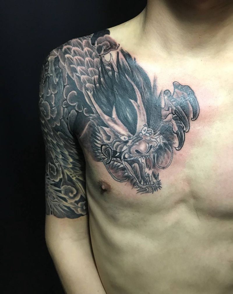 当前位置: 首页 >广东省湛江市纹身店-林裕刺青纹身图案>过肩龙,客人的强烈要求只添加,不改纹身图片