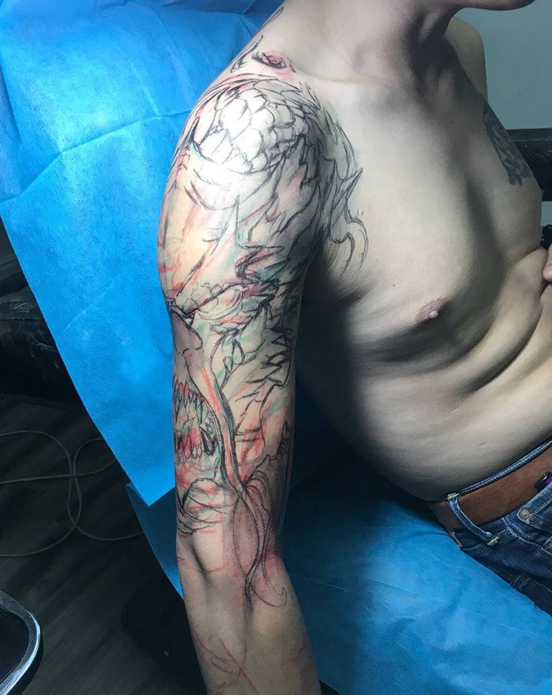 当前位置: 首页 >广东省湛江市纹身店-林裕刺青纹身图案>花臂未完待续纹身图片