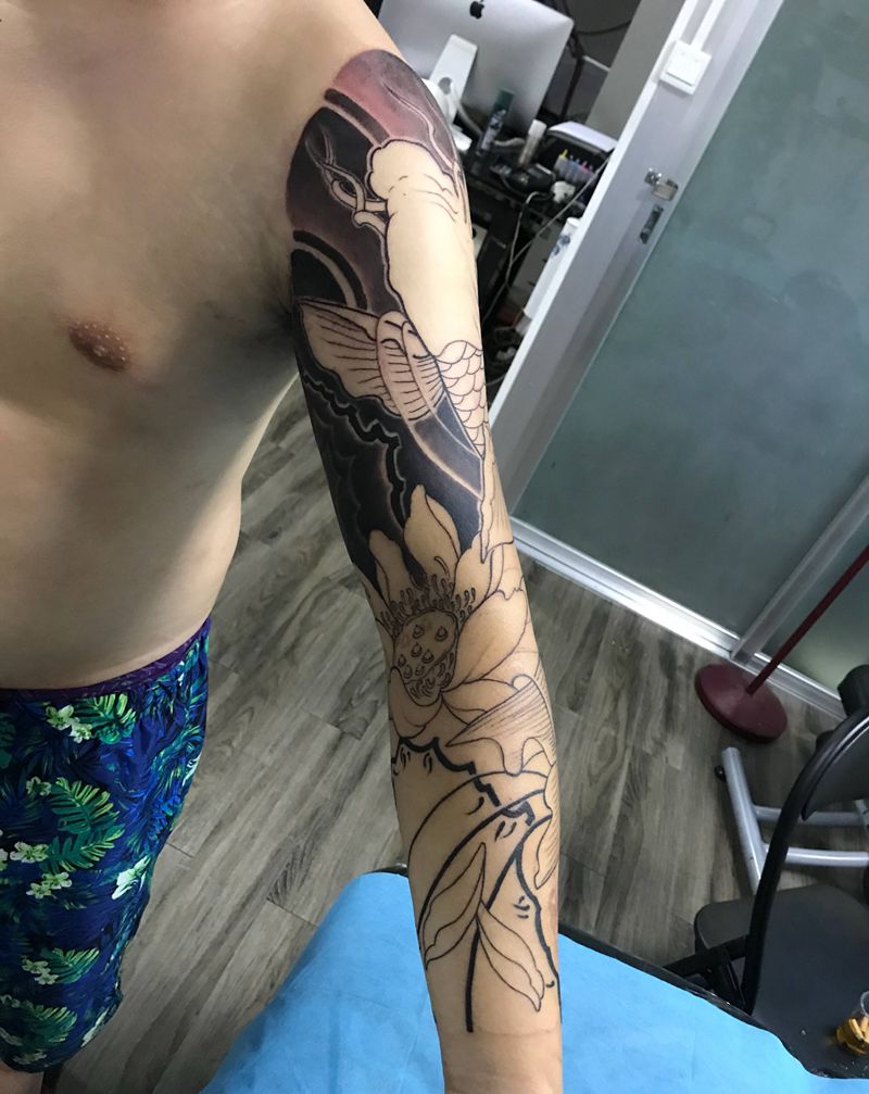 当前位置: 首页 >广东省湛江市纹身店-林裕刺青纹身图案>花臂锦鯉魚纹身图片