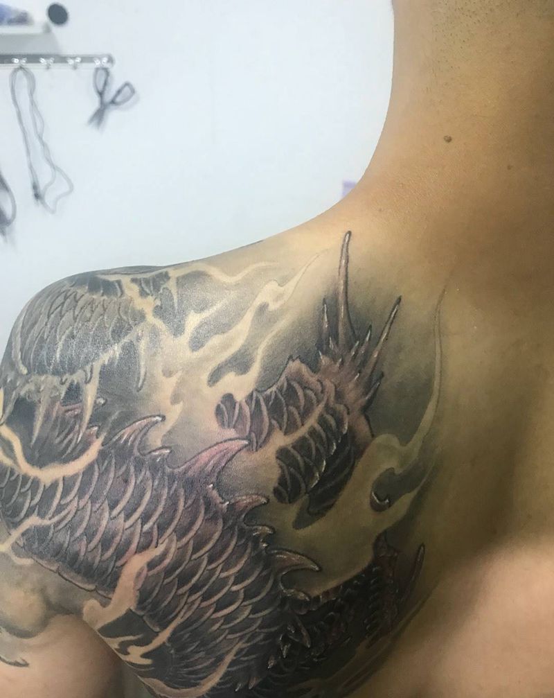 • 纹身吧推荐的披肩图腾半胛纹身图案作品展示