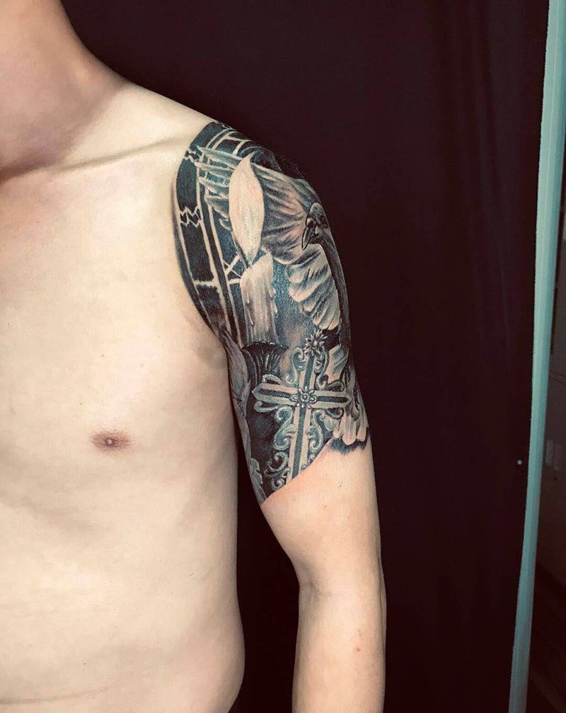 • 纹身吧推荐的披肩图腾半胛纹身图案作品展示
