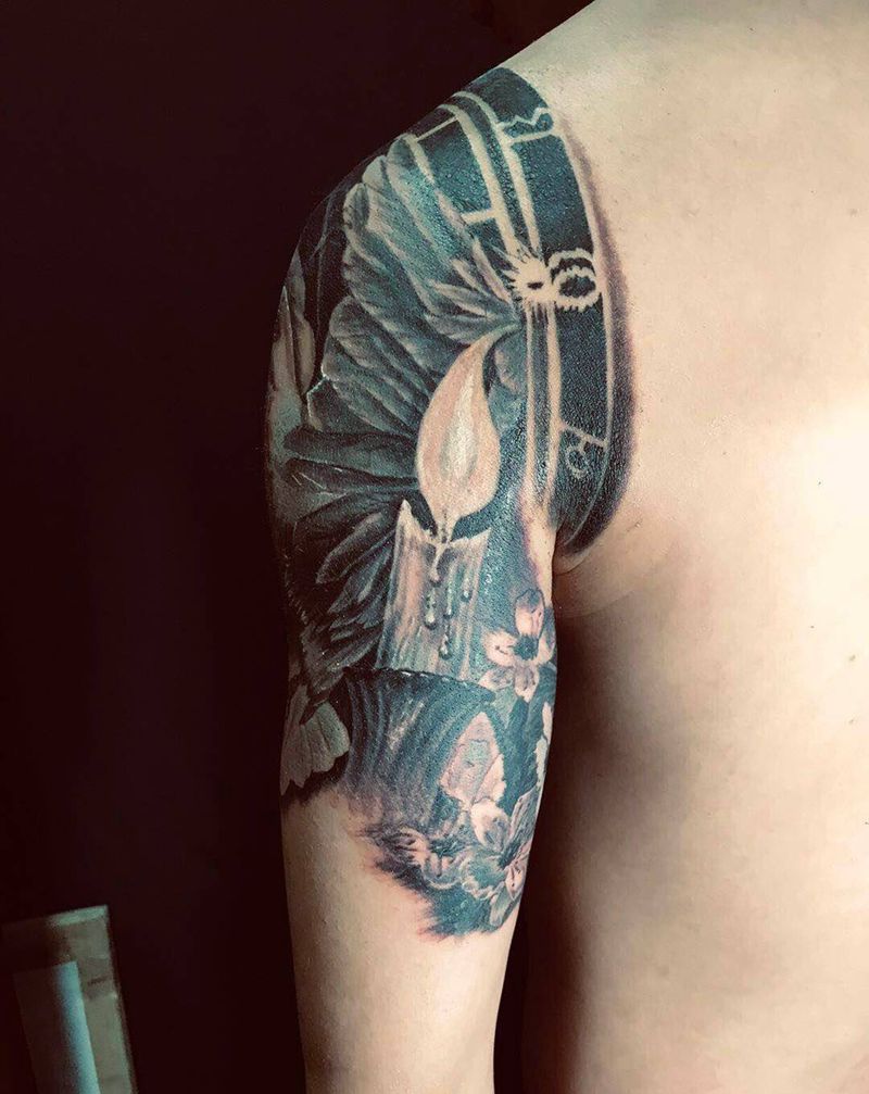 • 纹身吧推荐的披肩图腾半胛纹身图案作品展示