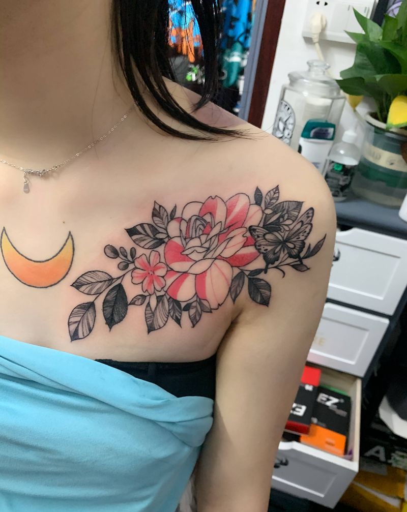• 女性大花胸纹身_43张霸气漂亮的女性大花胸纹身图案作品