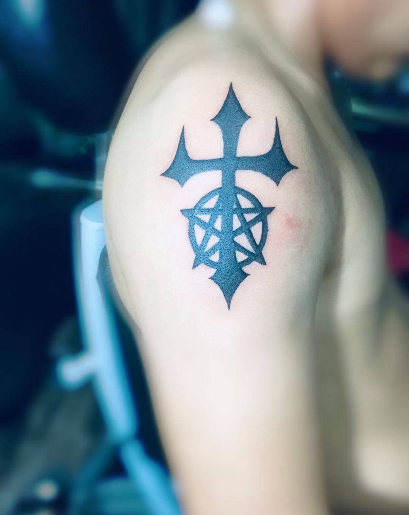 当前位置: 首页 >广东省湛江市纹身店-林裕刺青纹身图案>日常纹身图片_背部肩部纹身图案