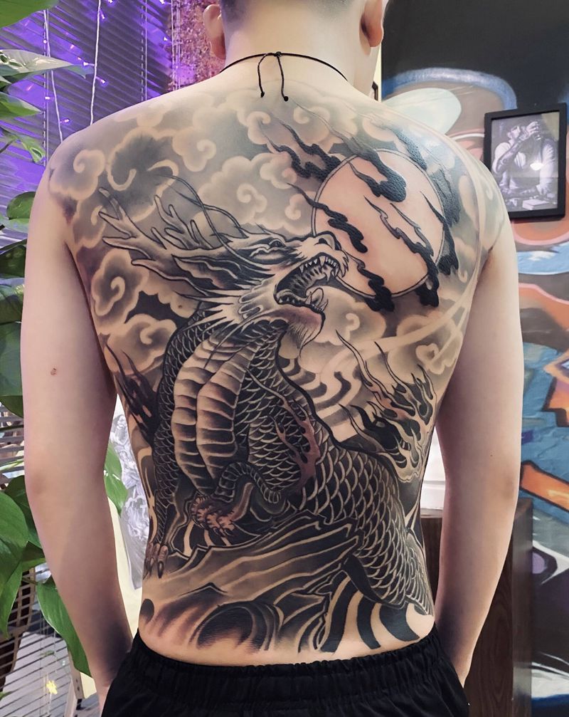 • T云龙九郎纹身图片_背部老传统云龙九郎纹身图案