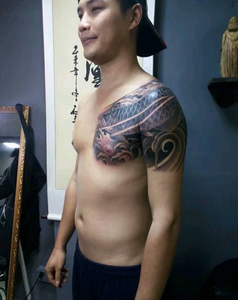 半甲之半背金龙鱼纹身图片