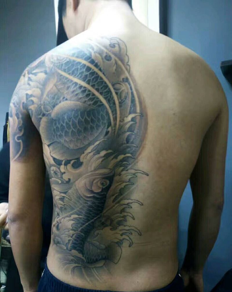 • 黑灰满背纹身图案