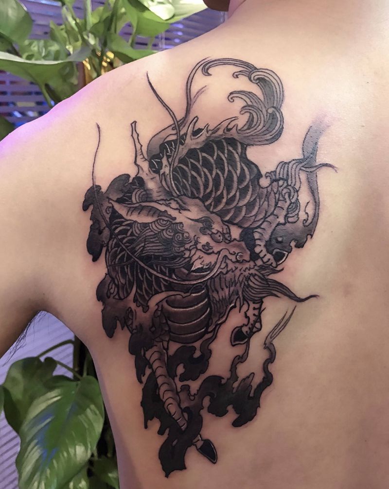 黑灰满背纹身图案
