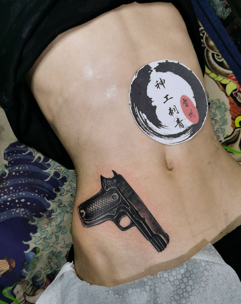 当前位置: 首页 >广东省湛江市纹身店-雷州【神工纹艺】纹身图案>枪纹身图片_手部手臂纹身图案