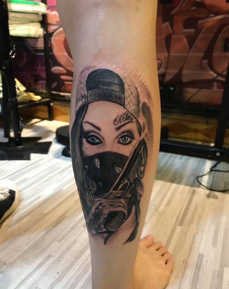 • T包小腿吹火男+阿多福纹身图片_腿部老传统新传统吹火男阿