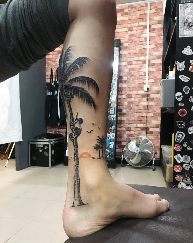 • T包小腿吹火男+阿多福纹身图片_腿部老传统新传统吹火男阿