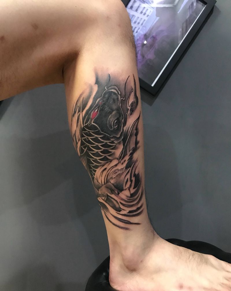 • T网红王老大花腿龙纹身图片_腿部新传统纹身图案