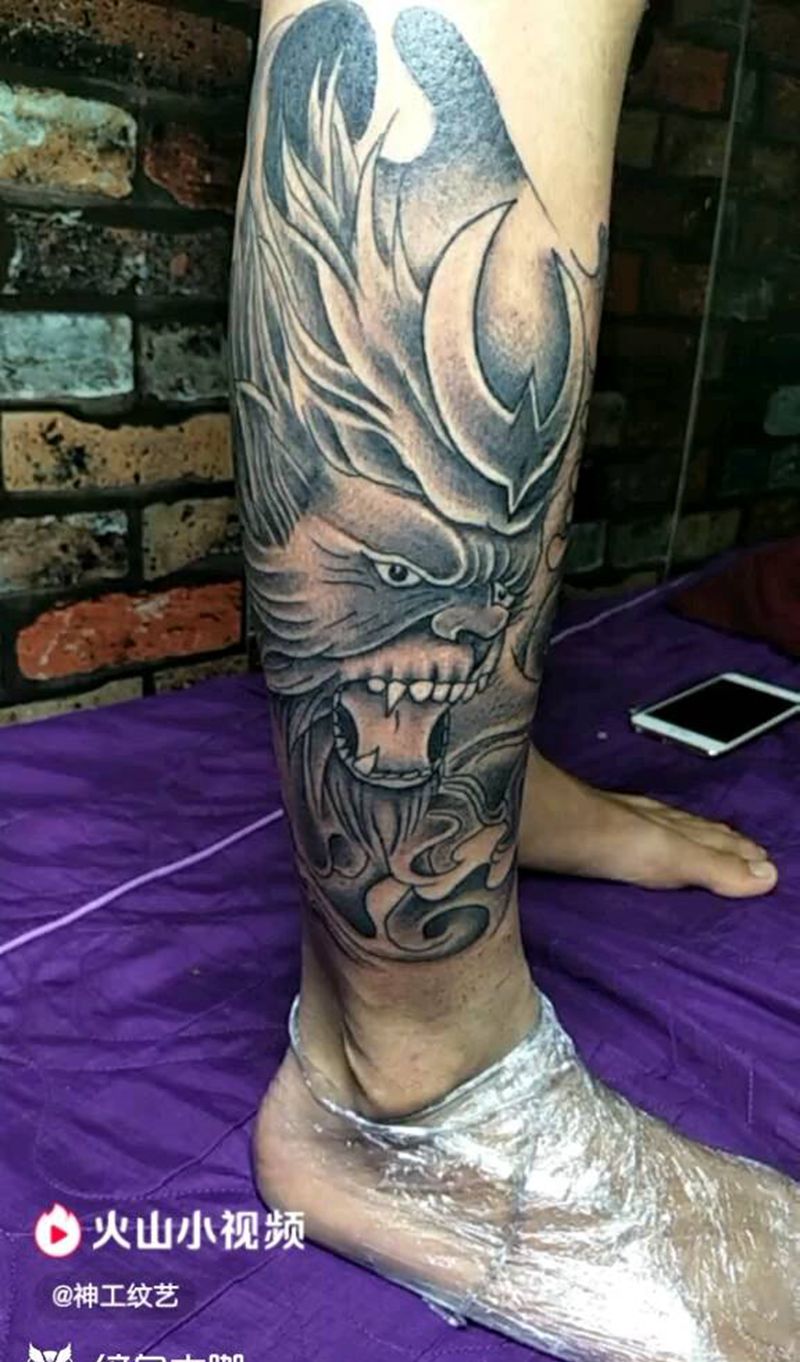 • T网红王老大花腿龙纹身图片_腿部新传统纹身图案