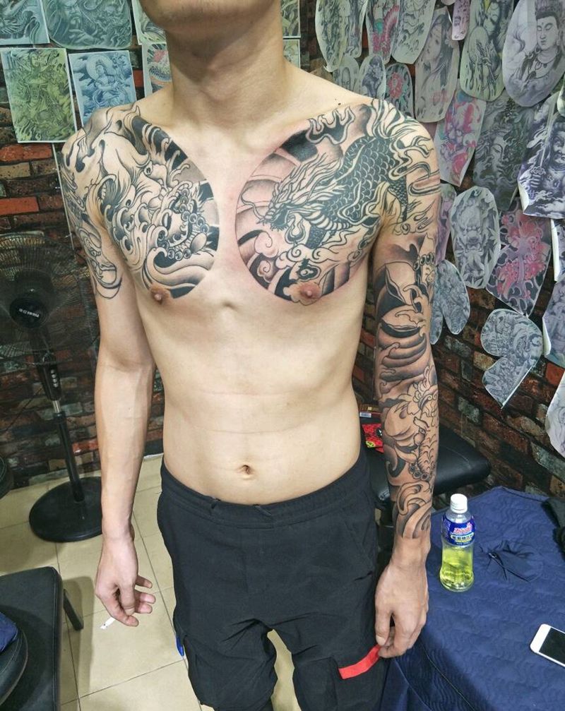 半甲 花臂纹身图片_胸部手臂纹身图案