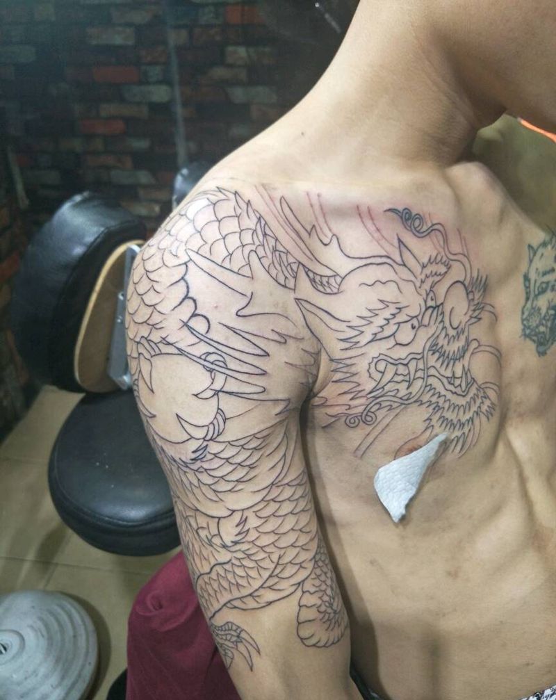 当前位置: 首页 >广东省湛江市纹身店-雷州【神工纹艺】纹身图案>过肩龙 未完成纹身图片