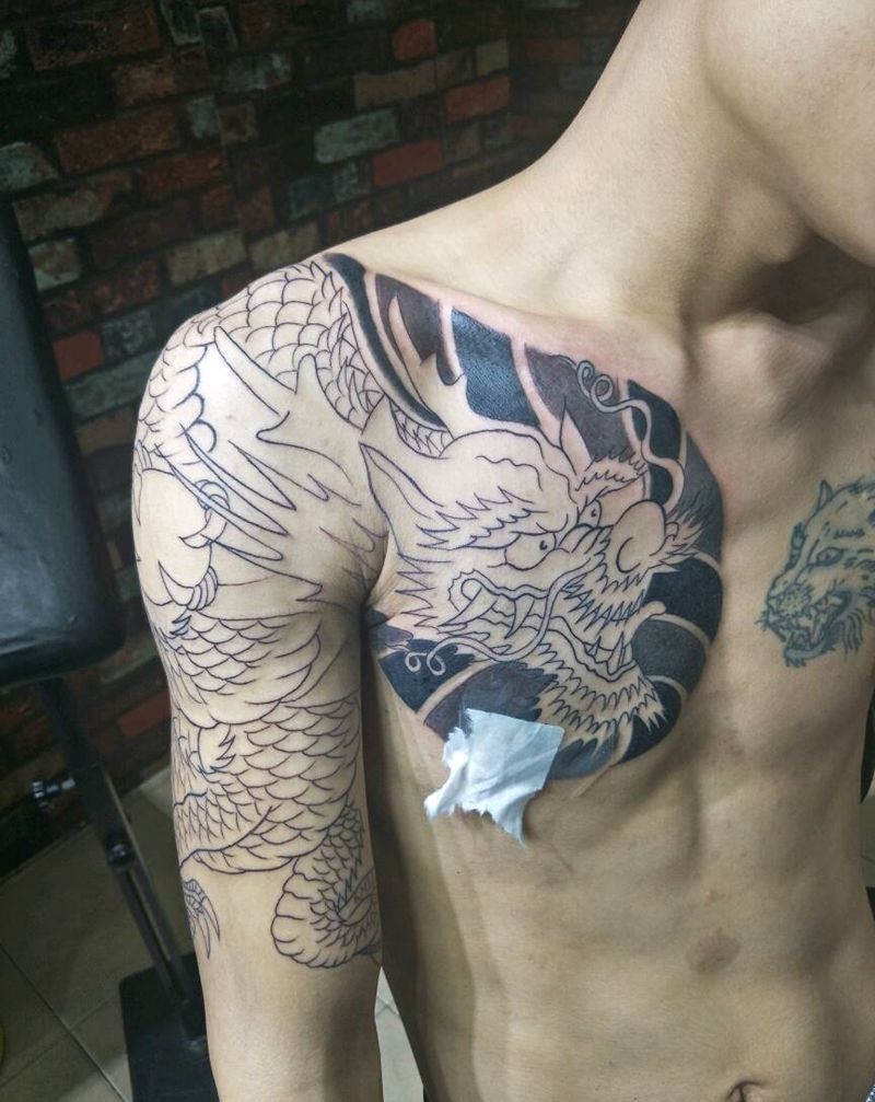 当前位置: 首页 >广东省湛江市纹身店-雷州【神工纹艺】纹身图案>过肩龙 未完成纹身图片