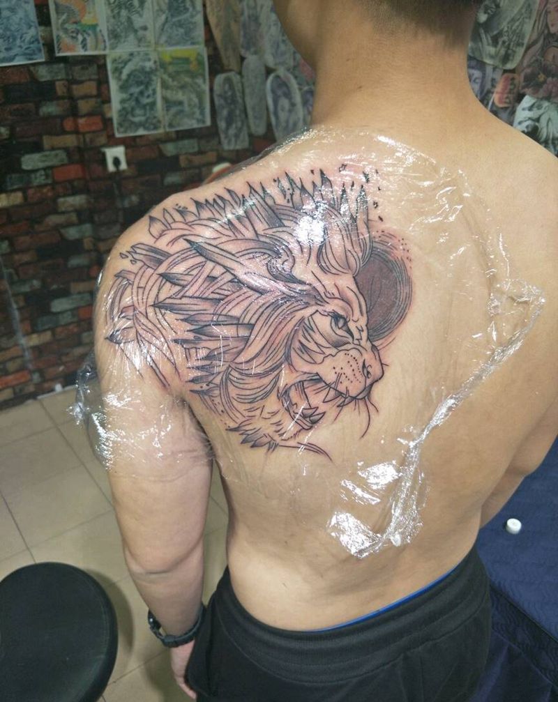 雄狮纹身图片_背部纹身图案