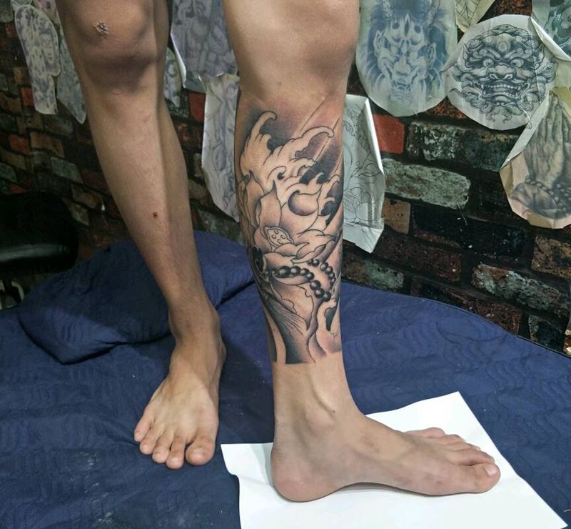 • T网红王老大花腿龙纹身图片_腿部新传统纹身图案