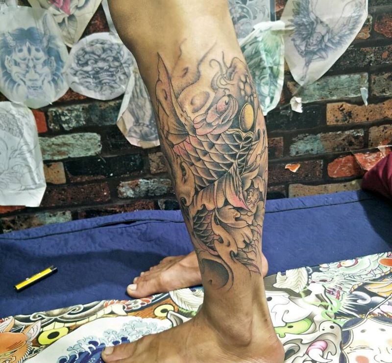 鲤鱼纹身图片_腿部纹身图案