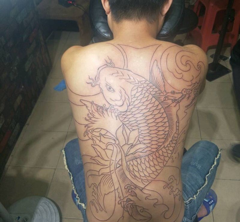 当前位置: 首页 >广东省湛江市纹身店-雷州【神工纹艺】纹身图案>鲤鱼满背线条纹身图片_背部纹身图案
