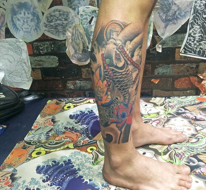 • T网红王老大花腿龙纹身图片_腿部新传统纹身图案