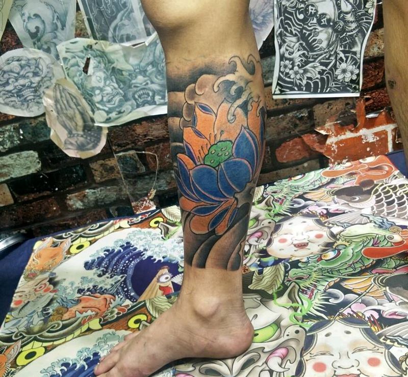• T网红王老大花腿龙纹身图片_腿部新传统纹身图案