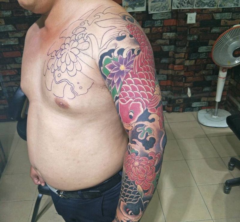 当前位置: 首页 >广东省湛江市纹身店-雷州【神工纹艺】纹身图案>传统锦鲤纹身图片_手臂胸部纹身图案