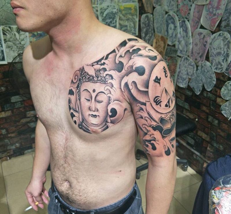 当前位置: 首页 >广东省湛江市纹身店-雷州【神工纹艺】纹身图案>半甲佛纹身图片_胸部手臂纹身图案