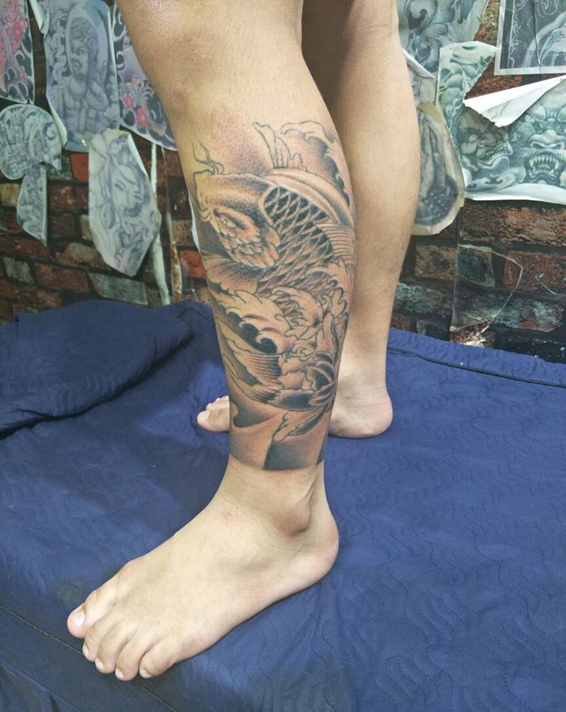 当前位置: 首页 >广东省湛江市纹身店-雷州【神工纹艺】纹身图案>修改、添加上色作品纹身图片_腿部纹身图案