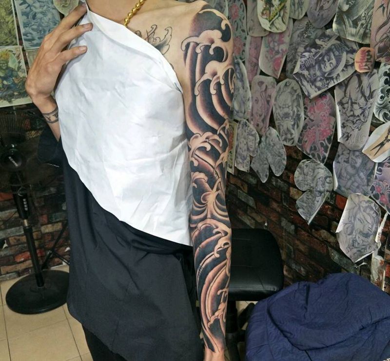 当前位置: 首页 >广东省湛江市纹身店-雷州【神工纹艺】纹身图案>浪花臂纹身图片_手臂手部老传统纹身图案