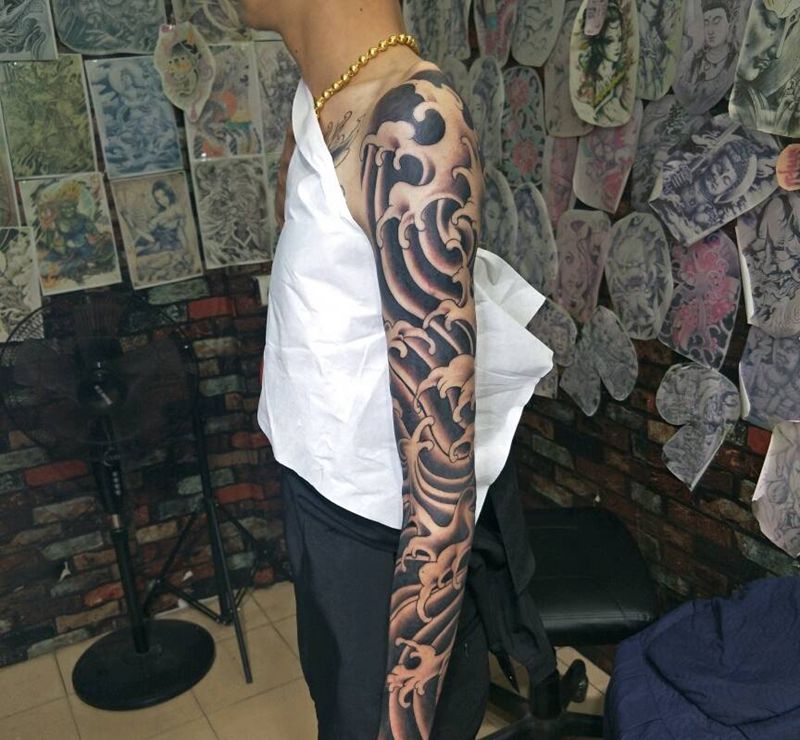 当前位置: 首页 >广东省湛江市纹身店-雷州【神工纹艺】纹身图案>浪花臂纹身图片_手臂手部老传统纹身图案
