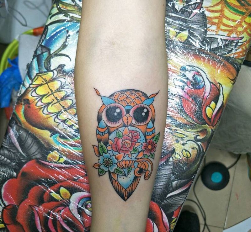 当前位置: 首页 >广东省湛江市纹身店-雷州【神工纹艺】纹身图案>猫头鹰纹身图片_手臂手部纹身图案