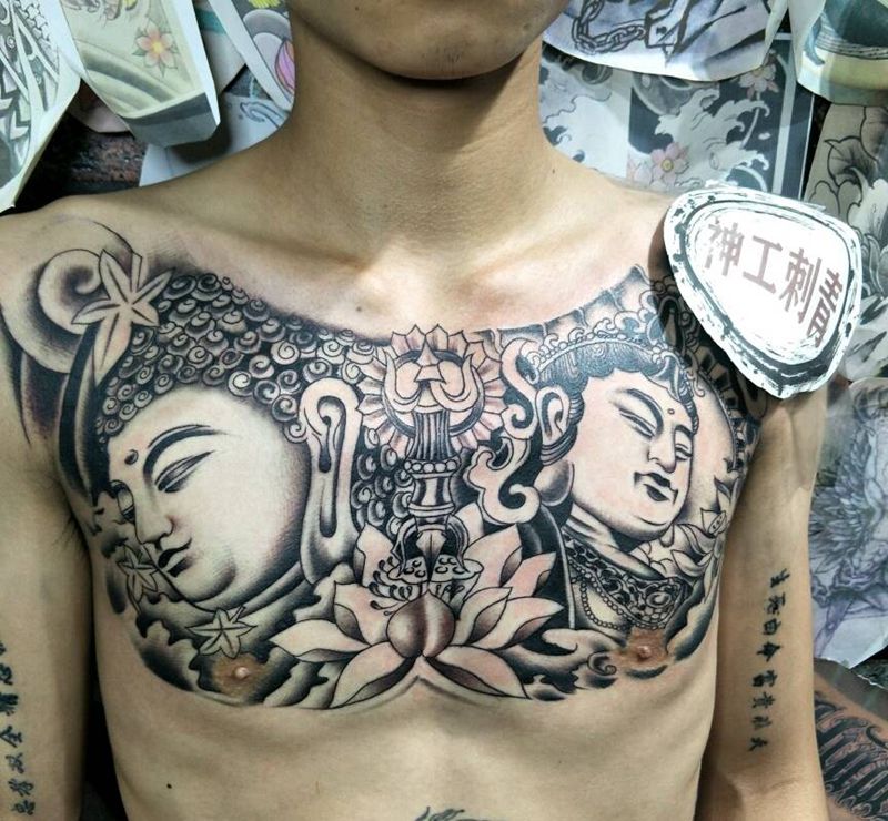 佛花胸纹身图片_胸部腹部纹身图案