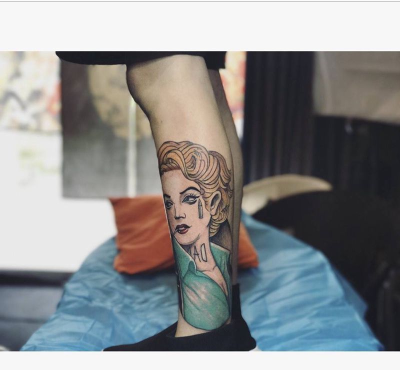 • T包小腿吹火男+阿多福纹身图片_腿部老传统新传统吹火男阿
