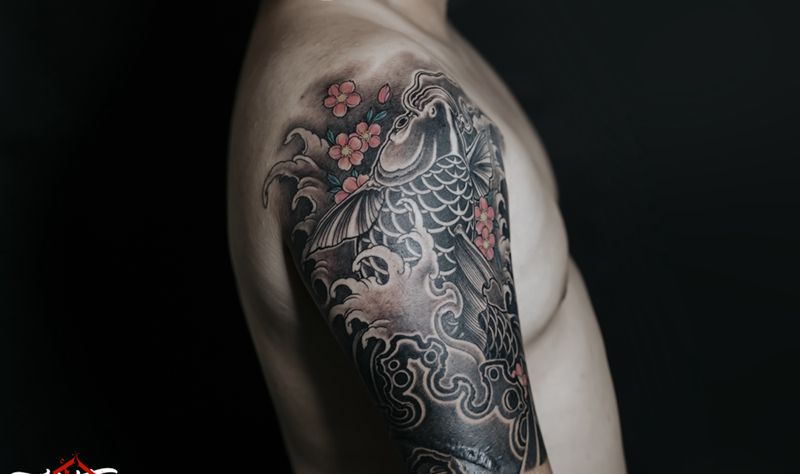 鲤鱼纹身图片_手臂纹身图案
