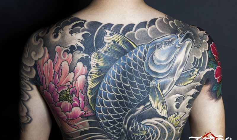 牡丹 鲤鱼纹身图片_手臂背部纹身图案