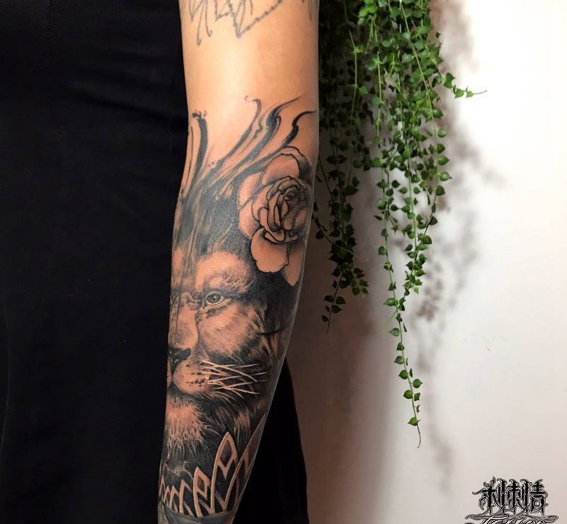 当前位置: 首页 >广东省茂名市纹身店-利刺青纹身图案>小手臂狮子纹身图片