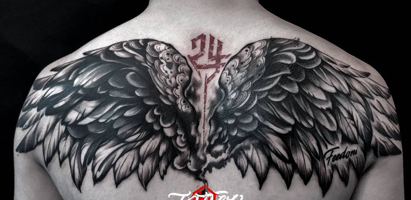 黑灰满背纹身图案