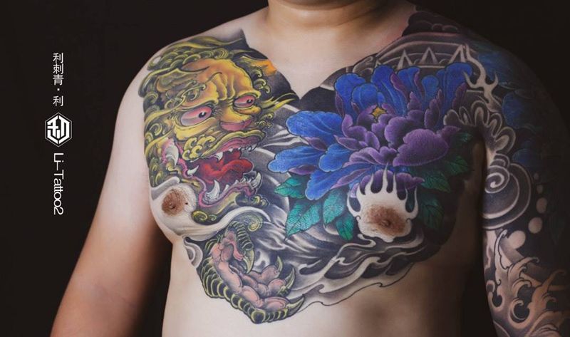 当前位置: 首页 >广东省茂名市纹身店-利刺青纹身图案>覆盖图(添加花胸➕小半甲)纹身图片