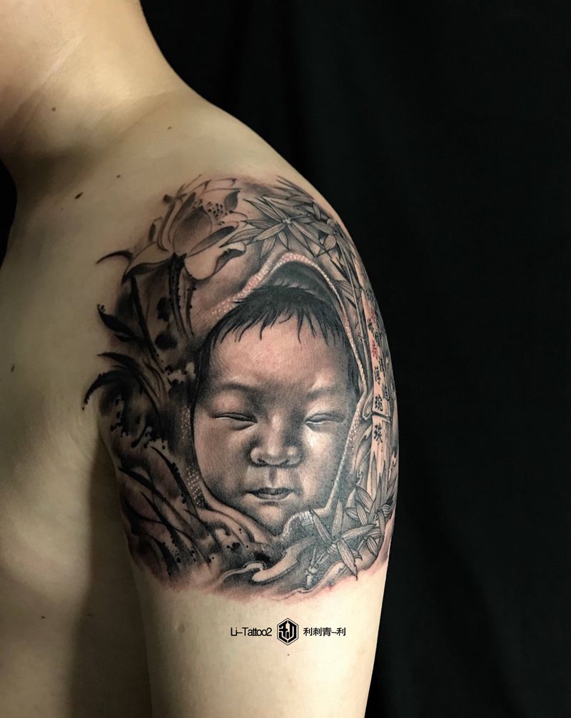 人像纹身图片_肩部纹身图案
