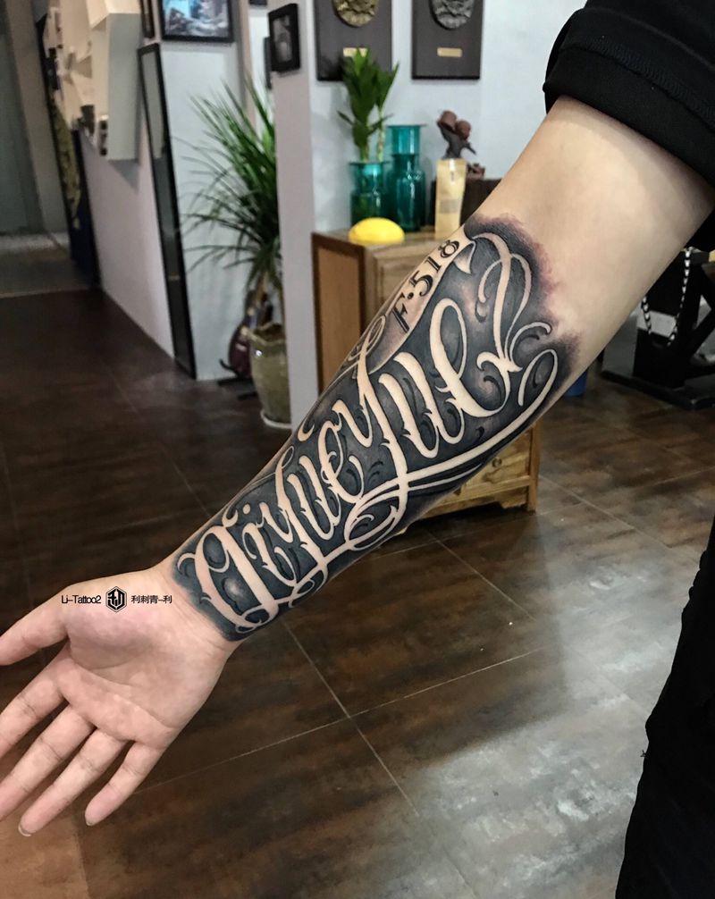 当前位置: 首页 >广东省茂名市纹身店-利刺青纹身图案>花体字纹身图片_手臂花体字纹身图案