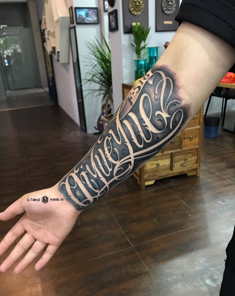 当前位置: 首页 >广东省茂名市纹身店-利刺青纹身图案>花体字纹身图片_手臂花体字纹身图案
